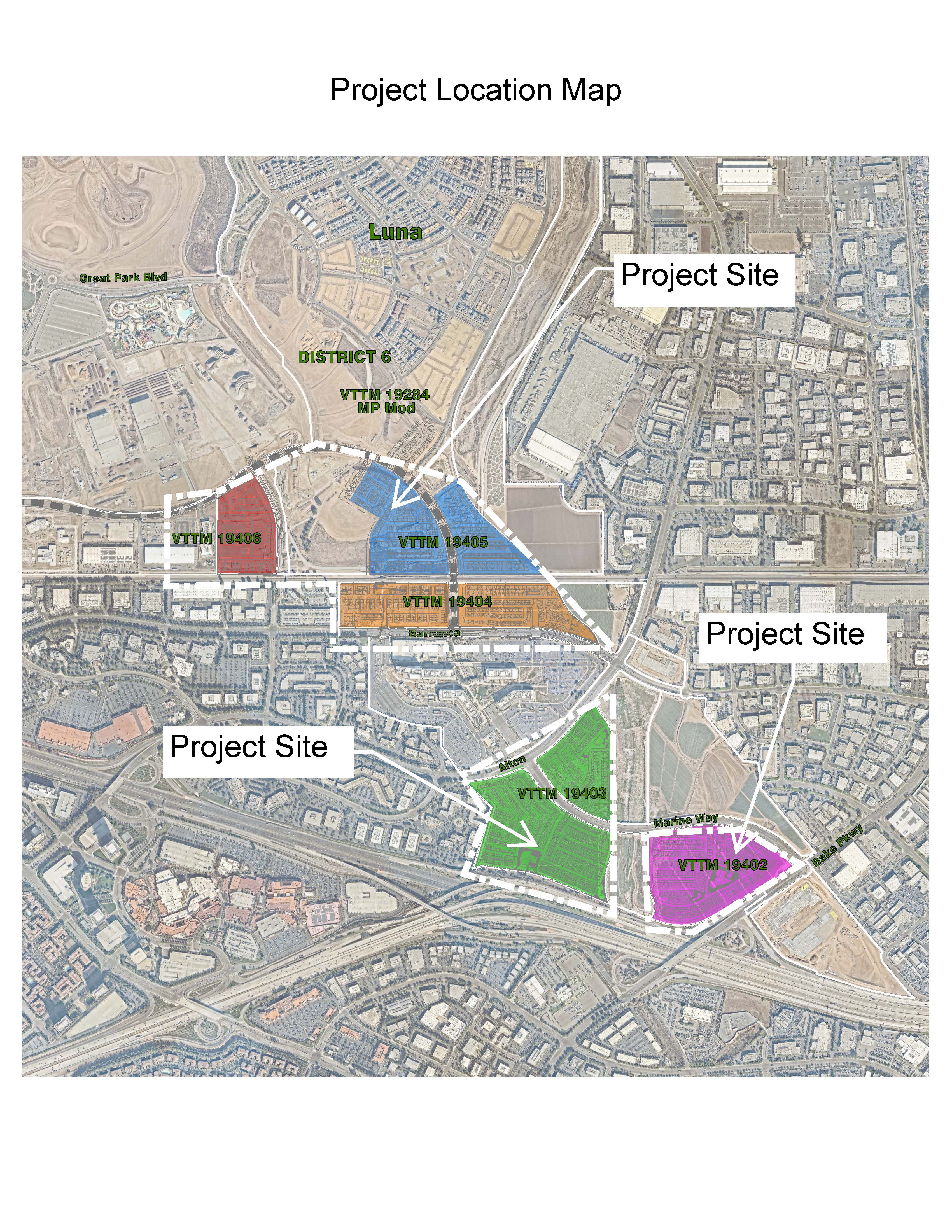 Five Master Plans – to establish site-level building layouts, architectural elevations, trails, landscaping, parks, wall and fence layouts and parking for attached and detached residential condominiums within VTTMs Nos. 19402, 19403, 19404, 19405, and 19406;