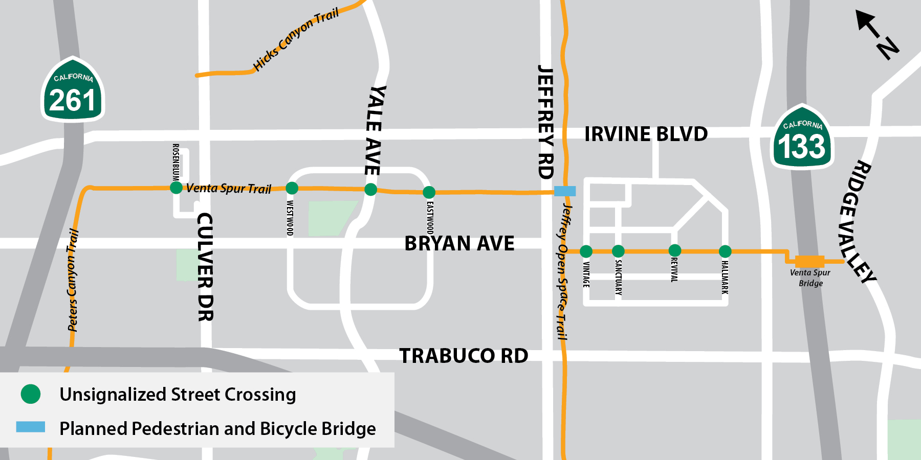 The Venta Spur Trail Crossings Improvements Project will review street crossings along the trail that do not have a traffic signal. The goal of the project is to identify opportunities to improve safety and accessibility for all users.