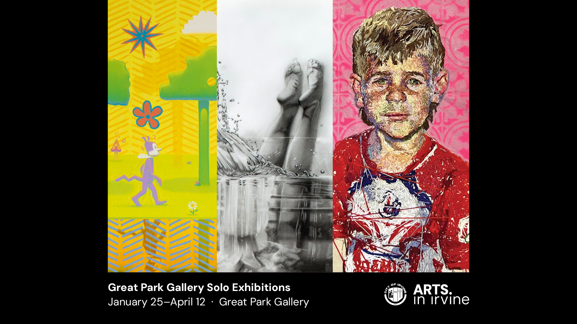 The Great Park Gallery is excited to present, for the first time, three separate solo exhibitions with artists Daniela Garcia Hamilton, Kristina Rose Baker, and Vonn Sumner. This dynamic installation of exhibits showcases a range of painting practices that span embroidery, abstraction, and comic strip storytelling.