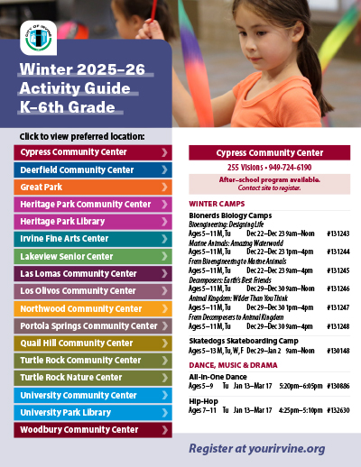 Read the winter edition of the IUSD Recreation Activities Newsletter for the latest information on City camps and activities for school-aged children.